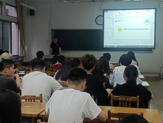 会议主要分为院级活动审核标准,团日活动审核标准,线下活动督察,到梦空间活动举办注意事项四大部分。谷泽宏在院级活动审核中重点强调了活动名称应为学院+活动名称,最大录取人数不能设置为不限且与学分设置、奖项设置总人数一致,以及奖项设置中若为团体赛事需注明,并且奖项学分需要乘以团队系数0.8;团日活动审核中,活动时间要填写自报名开始时间至活动结束时间,且需精确到分。注意活动时间不宜过长,并且在活动介绍中注明活动的具体时间,一般精确到两小时内赵家旗在活动督察方面强调了到梦空间的签到率、学分设置、活动督查等问题。