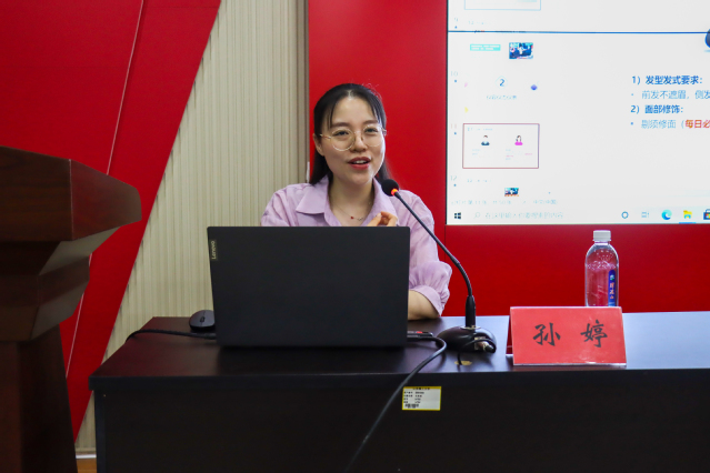 孙婷分别从礼仪概说、仪容仪态仪表、社交礼仪、商务礼仪以及大学生礼仪五部分作了详细介绍。她提到,礼仪的意义是人无礼则不立,事无礼则不成,国无礼则不宁,礼仪能体现个人修养,有利于人际交往,掌握社会交往规则。