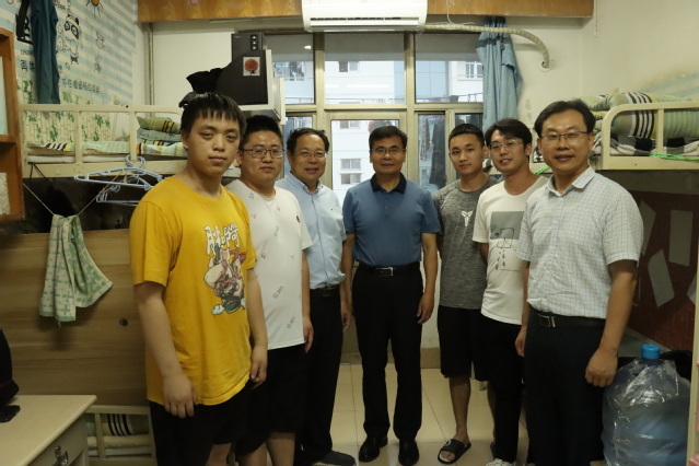 走进寝室,胡兴禹非常关切毕业生的发展方向,“是升学还是就业了?”“毕业后到哪工作啊?”“考研考到哪所学校啦?”他与学生们亲切交谈,在听到有的同学考上了中南大学、吉林大学等高校的研究生,有的同学到中铁、重汽等企业工作,有的同学考取了公务员,有的同学准备参军入伍后,他非常欣慰,嘱咐同学们:“虽然,在校学习时光已经结束,但学习是永无止境的。在新的起点上要向更高的目标奋进,在学习中实践,在实践中学习,期待同学们取得更大的成绩。”他勉励继续考研的同学要勤学习,下得苦功夫;善于思考,讲究学习方式方法,并祝愿他们顺利考上理想高校。