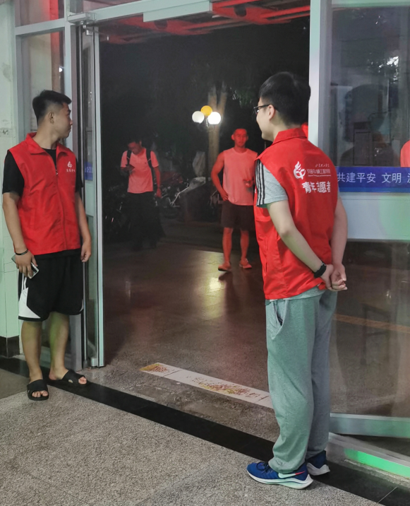 此外,毕业生离校期间,生活服务部联合学生第三党支部成员,开展“志愿服务在公寓·哪怕细小如尘”实践活动。由部门的同学与学生第三党支部党员在公寓每晚执勤到11点,协助管理员进行夜晚归寝、公共区域卫生打扫卫生等事宜,受到广大同学的一致好评。