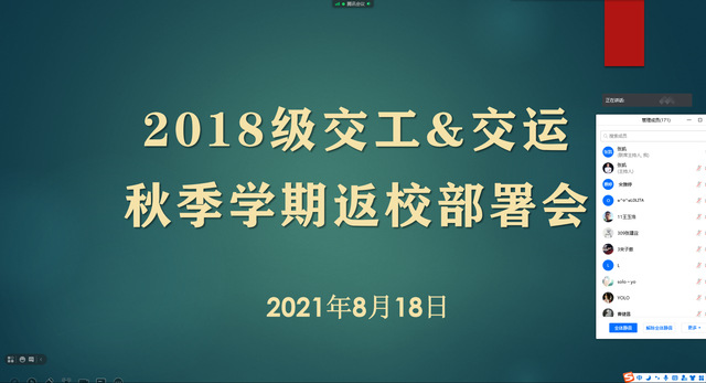 交通学院召开线上秋季学期学生返校工作会议