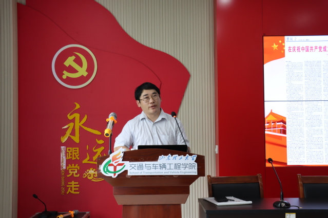 为深入学习贯彻习近平“七一”重要讲话精神,根据学院党史学习教育的总体安排,9月1日,交通学院在12教217组织开展学习习近平“七一”重要讲话精神专题报告会,马克思主义学院王在亮副教授受邀作报告,学院领导班子成员、全体教职工参加。报告会由学院党委书记褚兆勇主持。
