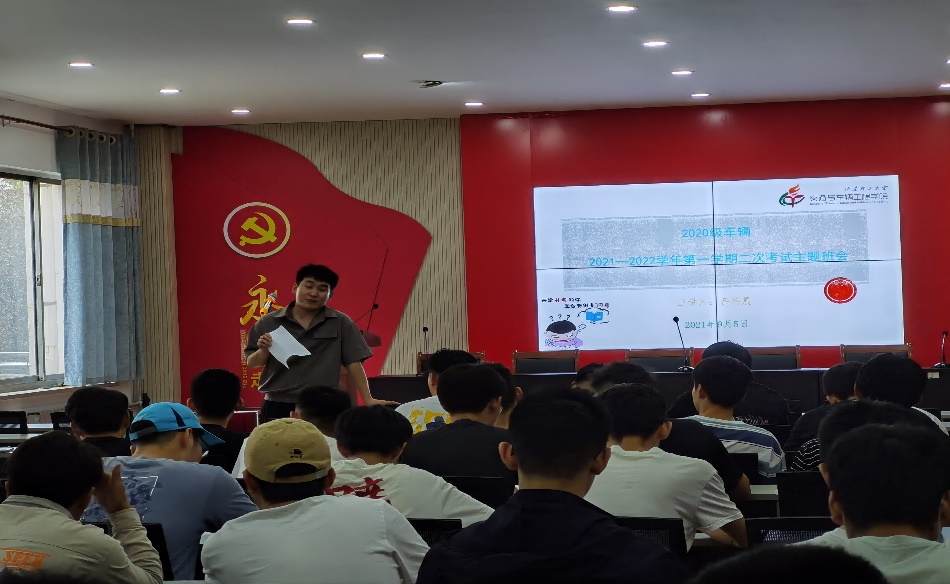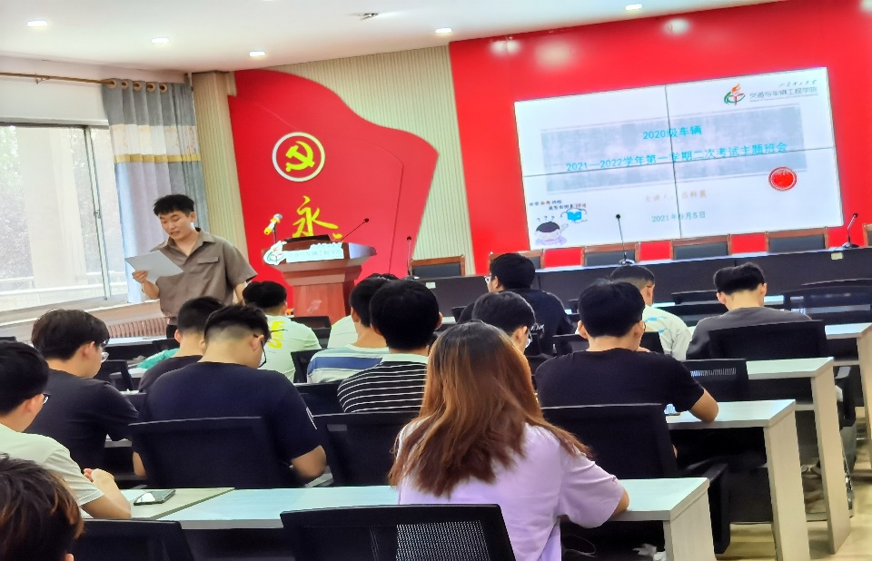 9月5日下午,我院2020级车辆工程专业在12号教学楼217教室召开二次考试主题班会,辅导员吕科晨主持会议。