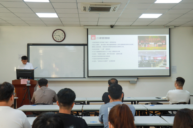 吕科晨作简要点评,他指出学生干部们在工作中未从思想上进行定位,工作规划和时间安排不合理,与指导老师沟通不及时以及活动缺乏创新意识等问题。