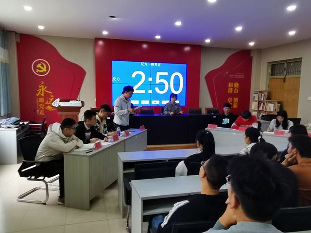 然后,双方一辩用具有高度概括性的陈述为本场辩论开篇陈辞。然后双方二辩彼此补充陈辞。双方二辩灵活的思维和缜密的逻辑推理,不时的赢得场下阵阵掌声。而到了比赛的第四环节自由辩论阶段,可以说是本场辩论的高潮,正方和反方选手运用扎实的专业知识,凭借厚实的文化功底,一针见血提出反驳观点。最后比赛进入总结陈词环节,双方四辩各自针对对手逻辑上的漏洞逐一回击,为赢得比赛做最后努力。