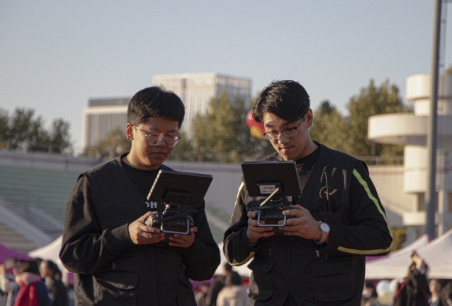 活动中途,社团首席飞行师孙舒鹏、社团负责人王俊杰、社团骨干成员任成程操控经纬M300、M200、M210对活动现场和舞台表演进行航拍,其中,M300悬挂禅思p1镜头,M200搭配禅思x4s镜头。此次无人机升空航拍也增强了社团宣传力度,吸引了众多活动参与者对本社团的关注。
