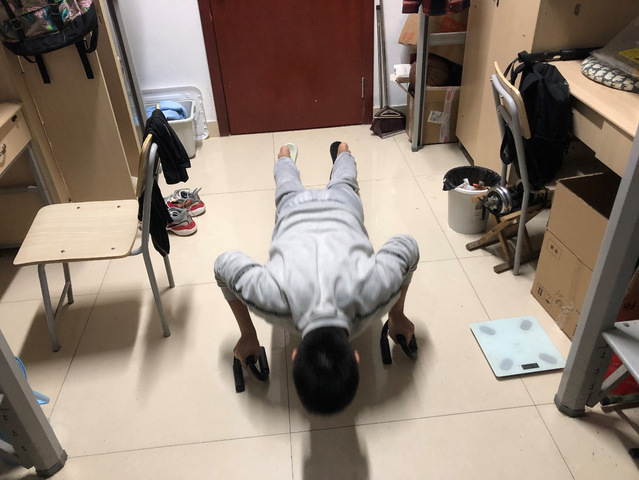 本次活动在平时的科研学习之余,组织同学们在宿舍强身健体。其形式不限,俯卧撑、平板支撑、仰卧起坐或者是利用简单的健身器材如哑铃,握力棒等进行锻炼。全班同学积极热情地投入其中,坚持锻炼,缓解学习紧张以及舒缓学习节奏,提高身体素质,增加抗“疫”能力。也有同学积极响应六个“一”的号召,自觉进行夜跑活动。