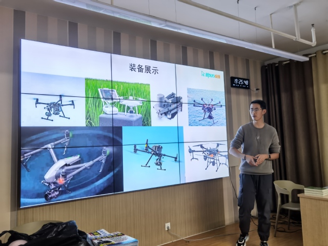 孙舒鹏从社团成立、获奖、科研成果、相关活动开展等方面对社团做简要介绍,展示社团拥有的多种大疆无人机,并与现场成员互动,答对飞机型号者奖励精品奖品一份。随后,播放视频展示无人机在三维建模、桥梁检测和罂粟巡检等行业的实际应用。
