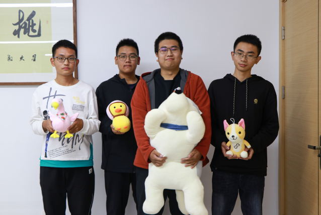 随后进入抽奖环节,四名幸运同学抽中毛绒玩具。