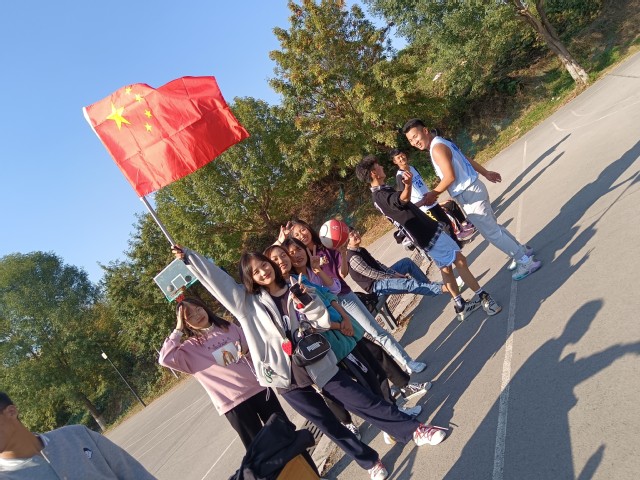 伴随着一声清脆的哨音响起,篮球比赛正式开始。双方队员奔跑、跳跃、旋转、运球、传球、投篮,积极投入比赛,身上闪现出奥林匹克竞技精神。随着一次次篮球进筐,场外的同学热烈欢呼、热情鼓掌,不断为本班队员加油鼓劲。看,她们挥舞着手中的国旗,红旗猎猎,映衬着动人的笑靥,那是青春里最美的风景线!