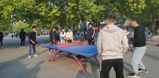 由于活动人数较多,未找到羽毛球场地,因此羽毛球比赛就在一片较为广阔空地举行,但丝毫没有影响同学们对羽毛球运动的热情,杀球、挑高,精彩技术不断上演,同学们轮番上阵,充分投入到活动中。