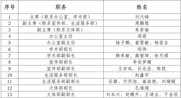 根据《关于williamhill威廉希尔研究生会换届工作的通知》的相关要求,经报名、资格审查、答辩、投票等环节,在充分考察初选人的思想政治状况、学习情况及工作表现等综合素质的基础上,拟定由以下人员担任williamhill威廉希尔第二届研究生会职务,现予以公示如下: