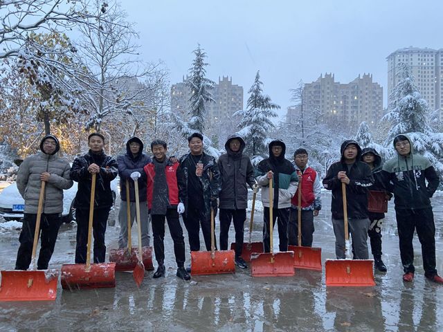 11月7日,校园迎来了冬日初雪,雪势较大,给出行带来了不便。考虑到同学们的安全问题,我院学生会积极组织学生会成员进行扫雪志愿服务。