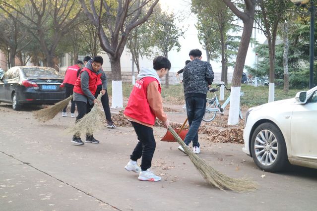 志愿者们以缩小范围的方式行动起来,他们将落叶清扫到道路两边,最后装袋处理。他们分工明确,齐心协力。由于工作效率的不同,不少同学在完成组内的任务量后,自觉为其他人“搭把手”,树立了“哪里需要志愿者,哪里就有自愿者”的良好形象。