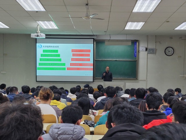 崔鹏表示,同学们在大学四年的学习和生活,每个年级都有不同的工作任务和目标,大一应注重对大学的认识以及未来职业的设想,为适应期,大二应注重基本能力的培养,为提升期,大三应注重职业定向考虑,为冲刺期,大四应注重择业或考研等,为毕业期,所以同学们要按照大学生活的规律确定自身长短期目标,制定行动计划和内容,才能达到事半功倍的效果。大三作为冲刺期,对于同学们将来的发展,是至关重要的一年,同学们要认真规划今后的学习和生活,学会自主式的学习方法,切忌终日赖床、刷视频、打游戏等现象发生,要赋予大三新的动力,让大三成为新的起点,为自身大学目标的实现奠定坚实的基础。