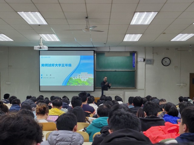 11月14日晚,我院2019级车辆、交工专业在5号教学楼205教室召开“如何过好大学三年级”主题教育班会,分析大学三年级同学们学习和生活中遇到的问题以及如何解决的方法,指导学生正确进行自我认知和职业认知,主动思考、积极谋划,引导学生树立科学合理、积极正确的就业观。此次班会由辅导员崔鹏主讲,2019级车辆、交工专业全体学生参加。