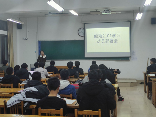 11月15日晚,我院能动2101班在12号教学楼212教室召开学习动员部署会,为期中考试准备。学习委员孙雅慧主持班会,能动2101班全体同学参加。