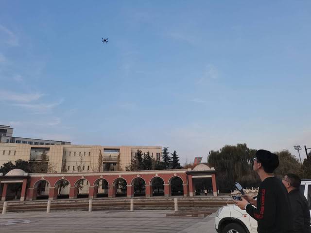 谭卫兵拿出自备的大疆Mavic air2s无人机,他告诉在场社团成员,这是他自2015年以来买的第四架无人机。准备工作结束后,air2s成功起飞。在air2s飞行期间,谭卫兵多次说到,在工作和学习中,要实事求是,不懂就问,这是作为新时代雷锋精神传人对待不懂问题的正确态度。