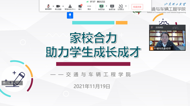 11月19日晚,我院2021级能源与动力工程专业与交通运输专业召开线上家长见面会,辅导员姜瑞瑞主持此次线上家长见面会。