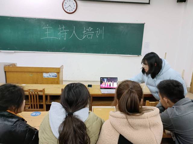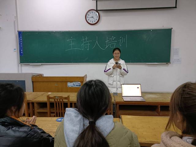 11月21日下午我院于12号教学楼212室开展主持人培训,此次培训由我院学生会素质拓展部黄倩主持。