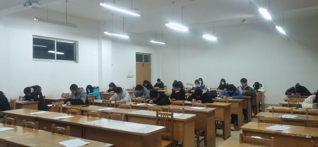 就考场秩序王伟做出详细要求,他强调本次考试不得作弊,不可互相传答案,不可传头接耳,试卷有问题可先举手在提问,不得大声喧哗,考试结束后须立马停笔等工作人员收卷,如有违例,可酌情减分,情节严重者当剥夺考试资格并关进“小黑屋”。考试正式开始后,每个考场都有一名工作人员负责签到,还有两名负责发放和收取试卷以使竞赛有序进行。同学们严格遵守考试纪律,在入场拿到试题之后立马进入状态,态度端正,沉着思考,认真作答。尽管有些同学迟到,但他们在工作人员的安抚下能迅速调整状态,有条不紊地答题。