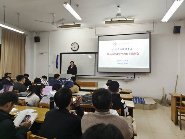 11月23日晚,我院2021级交运、能动专业在12号教学楼210、212、214教室举行了“期末动员”主题班会,此次班会由辅导员姜瑞瑞主讲,能动、交运专业2021级全体同学参加。
