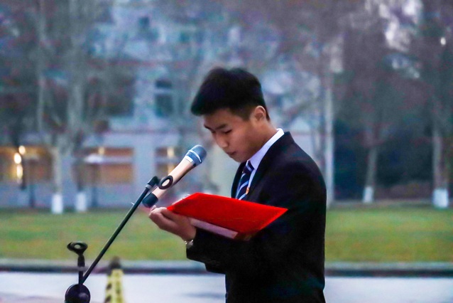 学院团委书记高萌发表国旗下讲话,他表示,同学们要树立远大理想,树立与当今时代主题同心同向的理想信念,树牢“四个意识”、坚定“四个自信”,不断从中汲取科学智慧和理论力量;要牢记历史使命,牢记习近平总书记对新时代中国青年的要求,勇担时代责任,勇于砥砺奋斗;要牢记习近平总书记嘱托,珍惜韶华,不负青春,继承发扬爱国主义光荣传统,加强道德修养,努力提高素养、增长才干、练就本领,在学习中增长知识、锤炼品格,不负青春韶华。