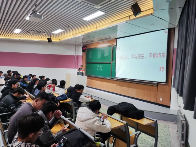 王霆向同学们分享了自己在学习、生活、科创等方面的经验。王霆告诉同学们一个道理“一个人走的会很快,但一群人走的会更远”,找到志同道合的朋友会形成积极的比较;同时同学们更要注重横向、纵向发展比较,“横向”通过与其他成员知识想法的比较进而促进对知识方面的发展,“纵向”通过和优秀的人的成绩的比较引发自身积极的好胜心。在生活上,王霆告诉同学们,读书是一个很好的习惯,希望同学们在大学四年的时间里多读书,读好书;多交朋友,优秀的朋友可以互相学习相互促进;积极参加一些社团活动增加自身的体验,促进自身个性发展;在班级建设方面,班级成员之间要团结,拧成一股绳,心往一处使,发挥好班级同学的个人主观能动性,每个人要时刻想着为班级做什么,自己如何做才能促进班级的发展,共同建设创建优秀班集体。