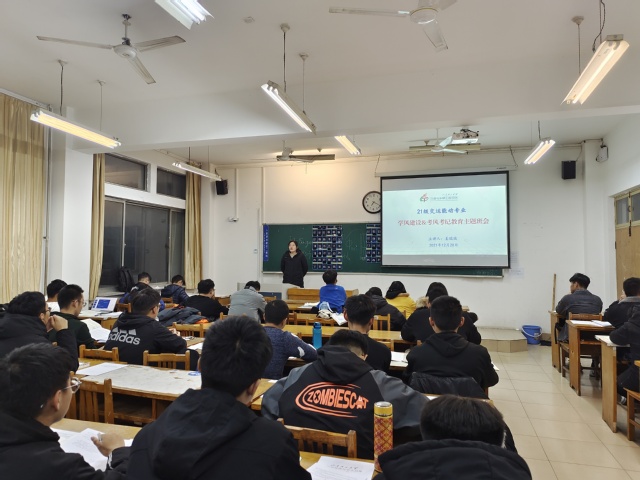 12月20日晚,我院2021级能动及交运两个专业在12号教学楼210、212、214教室举行了学风建设暨考风考纪教育主题班会,此次班会由辅导员姜瑞瑞主持,2021级能动、交运专业全体同学参加。