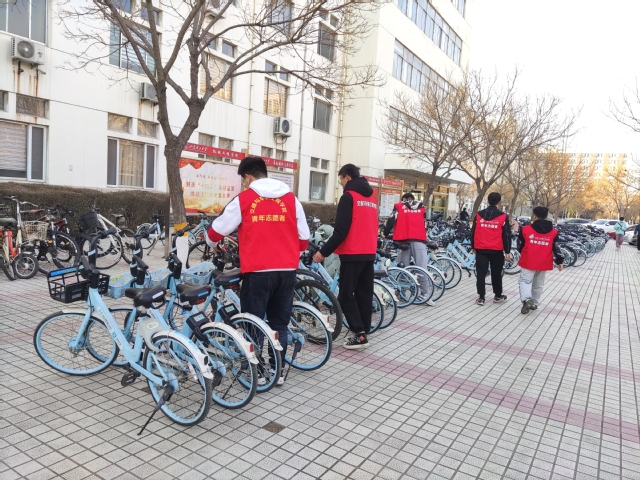 志愿服务内容主要包括将单车移至指定区域摆放整齐、将清理区域内白色垃圾(如废纸、塑料袋等)就近放到垃圾桶或果皮箱内。活动由班长李晗,团支书严婧涵组织。按照提前规划好的区域,同学们对共享单车进行集中整齐摆放,并捡起路边、草地上的塑料袋、废纸等垃圾,分类投放到垃圾箱。