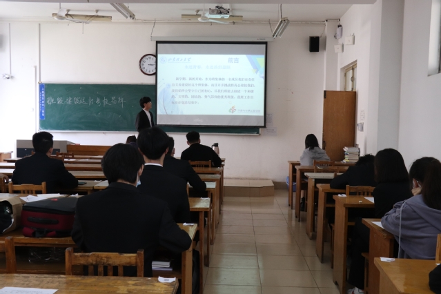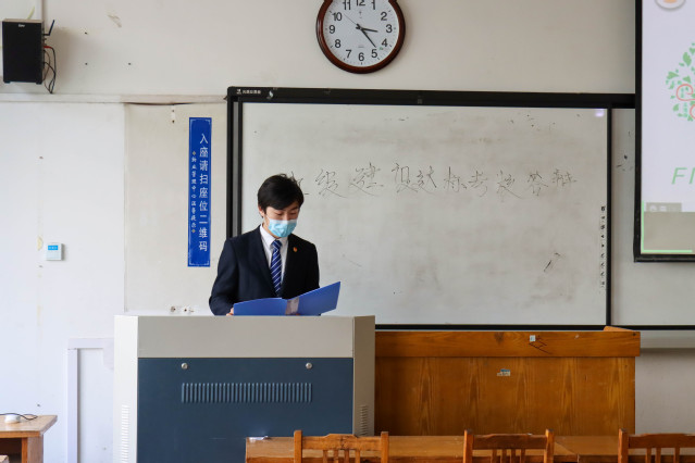 为全面总结上一学期班级建设成果,更好地开展新学期班级建设工作,4月7日下午,学院在12号教学楼分年级举行2021-2022学年第一学期班级建设达标考核答辩会,学院党委副书记蔡清吉、团委书记高萌、学生工作办公室全体辅导员在各年级答辩会场担任评委,受疫情影响,本次会议采用线上线下相结合的方式进行,评委老师与答辩班干部参与现场答辩,其余学生干部参加线上会议并进行评分。