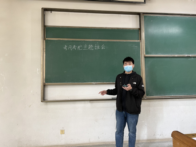 此次主题班会,学委蔡园培主要围绕诚信考试、考试作弊的危害、如何高效复习等三个方面展开讲解。首先,他在“诚信考试,从我做起”部分详细介绍了诚信考试的必要性、并从社会的道德性、教育的公平性以及成长的自律性三个维度进行讲解,告诫学生“人无信而不立”。随后,他带领学生重申考场规则,带领学生了解学习《刑法修正案(九)》中对国家规定考试作弊行为的刑事处罚,以及《williamhill中国学生违纪处分规定》中针对考试作弊的相关处理规定,并以七例考试作弊违纪通报案例向同学们发出警示。最后,他针对考试复习提出几点建议,希望同学能够合理规划时间,制定有效的复习策略,在大脑中构建完整知识体系,讲究方法,加强练习,调整心态,劳逸结合,自信应考。
