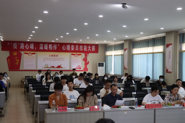学校学生工作处学生心理健康教育与咨询中心滕亮,农工学院贾晶晶、资环学院苗涛、材料学院张福玲和交通学院范晶晶五位老师出席并担任评委,学生代表张刚、张雯欣主持本次比赛,承办学院负责人及部分学生代表一同观看了比赛。
