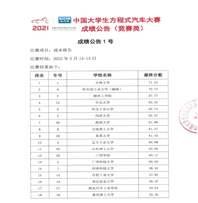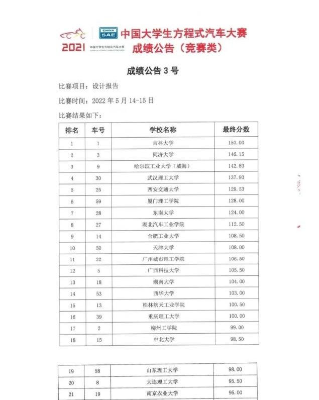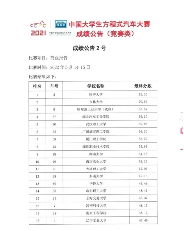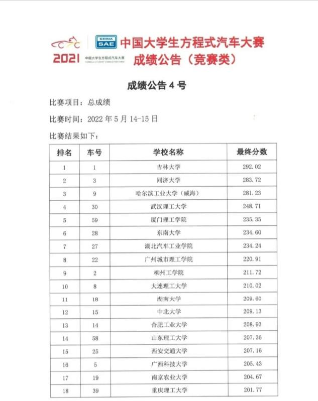 2022年6月19日,中国大学生方程式大赛颁奖典礼通过线上直播进行,williamhill中国至尚方程式赛车队以总分第14名的成绩获得国家级二等奖,同时获评FSCC优秀问答表现奖、案例分析优秀奖,受疫情影响而多次推迟的2021赛季圆满收官!