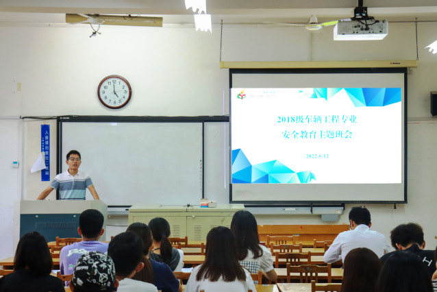 为进一步树牢安全发展理念,压紧压实安全责任,扎实开展安全风险隐患排查整治和宣传教育活动,6月12日-13日,我院2018级车辆工程专业分班级在12号教学楼213教室召开安全教育主题班会,班会由辅导员崔建强主持。
