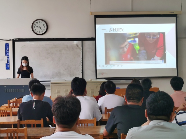 第一个团队选取的是有关乡村振兴的主题,团队成员邓菲简单介绍实践内容之一参观中国琉璃制造文化,领略到师傅们技艺精湛,最后与同学们一起观看实践总结视频。