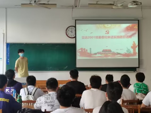 9月1日上午,交运2001班开展“暑假归来话实践”主题团日活动。此次活动由团支书孟庆文主持,交运2001班全体同学积极参会。了解本班暑假社会实践情况,总结活动成效和主要经验,个人分享自己实践感悟,交流体会收获,展评实践成果。