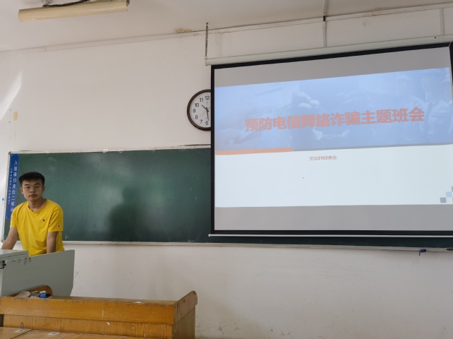9月16日,在12号教学楼215教室,交运2012班组织了关于“预防电信网络诈骗”主题班会。交运2102班全体同学参加此次班会,班会由心理委员王广帅主持。