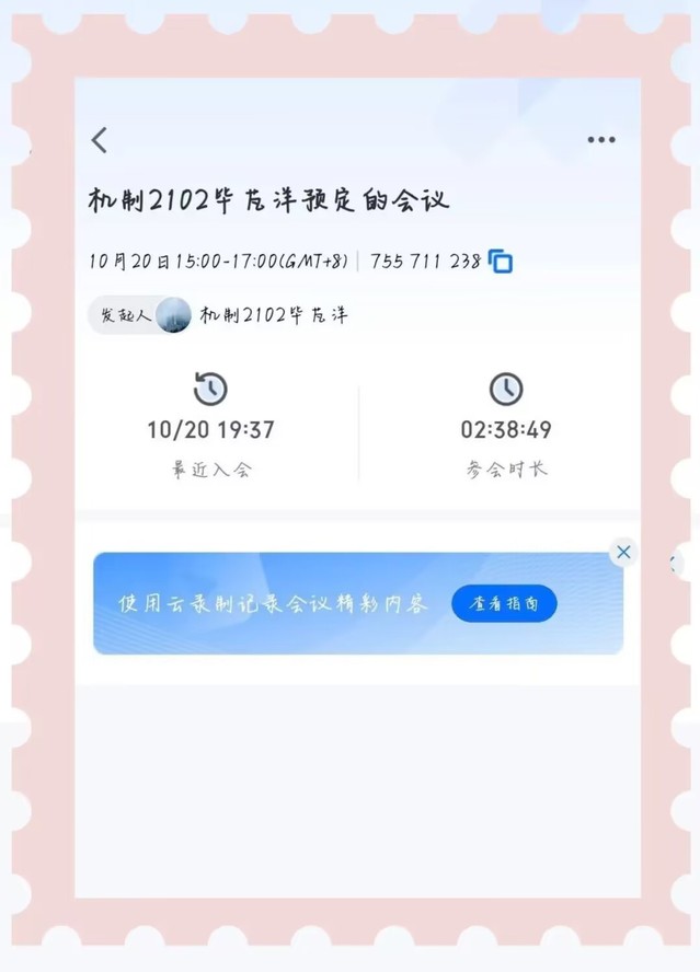 此次线上电影放映通过腾讯会议共享屏幕完成,活动开始后,由活动负责人将活动会议号发至活动QQ群内,活动要求同学们必须认真观看,工作人员在后台检测每个同学的在线时长,每位参与同学的观看时间需要大于一定时长。