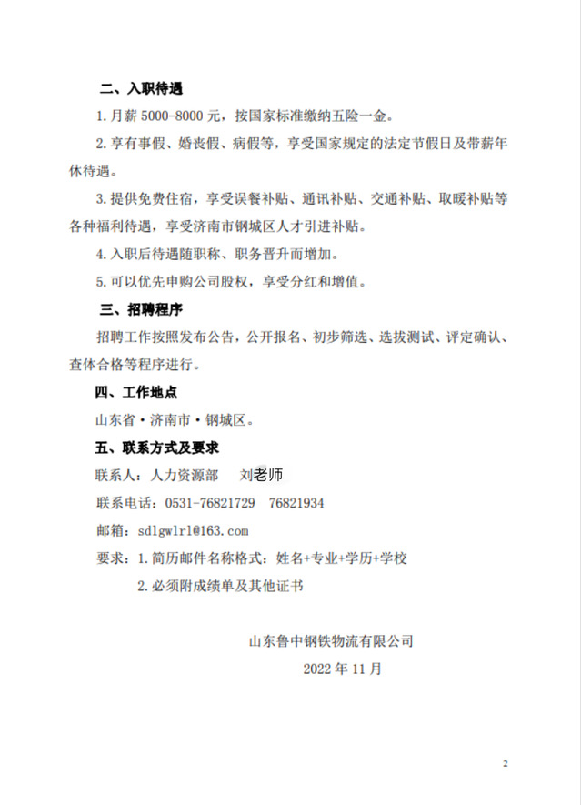 山东鲁中钢铁物流有限公司招聘(交通运输、车辆工程)