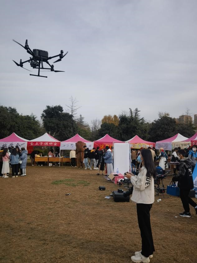 社团工作人员还驾驶无人机在会场进行表演。这不仅使新生们感到惊讶与震撼,也促使其对无人机产生浓厚兴趣。从而让更多的人加入到创飞科技协会这个大家庭中去。