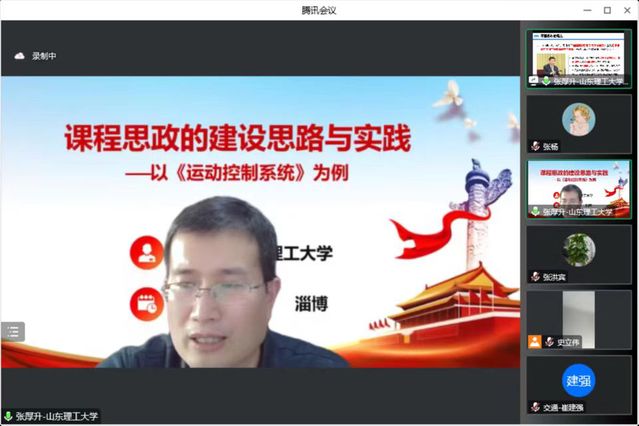 张厚升以“课程思政的建设思路与实践”为题,从课程思政的内涵、课程思政赛事与示范课、课程思政的落地实施等三个方面作报告。他结合习近平总书记关于课程思政的重要论述以及课程思政相关文件要求阐释了课程思政的内涵以及必要性;结合课程思政示范课、青教赛、教创赛等赛事评选条件,从材料撰写、申报书提交等方面分享了经验和做法;以自己讲授的《运动控制系统》课程为例,运用OBE理念人才培养模式理念,详细讲解了课程思政落地实施的方法和路径。