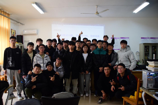 2月22日早上8点,距抢车号还差30分钟。“检查网线连接,检查设备”“各组看一下谁还没到”。8点29分,距正式开始还剩60秒,“准备计时”,“60,59,…5,4,3,2,1”在临近的时间中,每一秒都让人紧张。抢车号开始后,大家按照模拟时的分工,紧张而有条不紊的进行答题,面对波动的正确率,队员们不曾放弃。在经历了需要重答的突发状况后,队员们获得了2023赛季的08号车号。