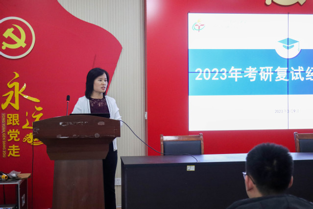 李瑞先指出研究生复试全面考察学生专业基础理论、专业综合能力、实践与创新能力、人际沟通与团结协作等方面的综合素质,她从考研复试的流程、复试的内容、复试注意事项等方面进行了详细讲解并提出具体建议,她鼓励同学们要做好充足的准备,保持自信沉稳的心态,从容冷静应考,并预祝所有同学如愿以偿,一战成硕。