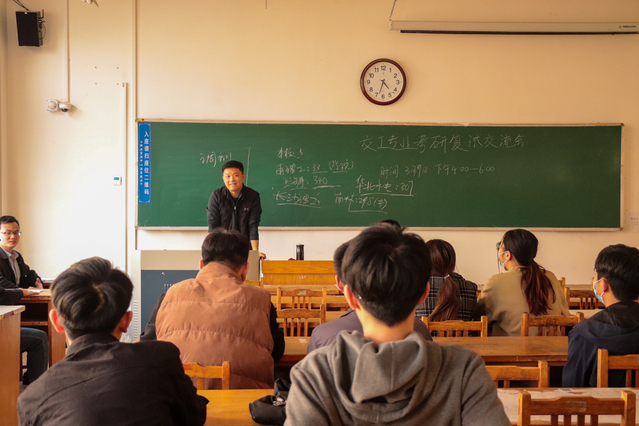 随后,车辆工程、交通运输、交通工程和能源与动力工程四个专业分别到分会场,各系主任分别介绍了本专业今年的考研形势、近几年的考研情况,以及考研、复试调剂的政策变化等,从研究生复试流程、仪容仪态、面试技巧等方面给大家作了全面的指导,并围绕学生们关心的问题进行了详细解答。