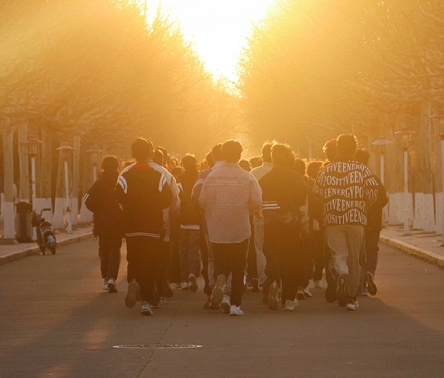 在学院学生会主席团的带领下,全体2022级本科生,在第三体育场集合,正式开启2023年新学期“第一跑”。各班级由文体委员领跑,晨跑路线为围绕三体慢跑三圈,晨跑过程中,同学们通过响亮有力的口号调整步伐。队伍中的同学相互帮助,彼此鼓励,坚持跑完全程。口号声、喘息声、脚步声,使得整个学院充满了活力。