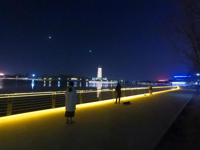 创飞科技协会第五届理事会长孙舒鹏与协会成员提前到达孝妇河湿地公园齐风塔、淄博大剧院等拍摄地点,对设备进行整理调试并操纵无人机进行航拍,记录熄灯一小时过程,晚20点30分,孝妇河湿地公园齐风塔等代表性地标建筑准时熄灭了景观光源,积极响应了低碳行动倡议。活动过程中团队成员操控无人机与多个联名单位共同合作,相互配合,进而完成任务。
