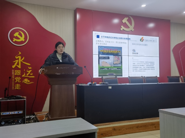 班会上,姜瑞瑞就法律知识和安全常识专题教育做出强调,并结合法律、法规和学校安全管理规章制度,依托校园典型安全事故以及社会热点案例,以防电信网络诈骗、防非法传教、防火、防盗、防溺水、防传销、防人身伤害、防交通事故等为主要内容,对学生开展安全教育。她带领同学们学习了法律知识,通过真实案例,对发生在大学生群体中常见的诈骗骗局进行分析,提醒同学们注意保护个人信息,知法懂法守法,用法律武器保护自己的合法权益。同时结合近期出现的违纪事件,以及校园周边存在的安全隐患和校园安全常识,详细分析了学生出现违纪事件的自身因素和社会因素,要求同学们吸取违纪学生教训,认真学习校规校纪,将校规校纪内化于心,外化于行;遇到问题要及时联系老师,及时疏导调整自我情绪,做心理健康、积极向上的大学生。