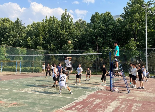我院队员提前到场进行赛前热身。赛场上,排球队员们挥洒汗水,发球、拦网、扣杀、垫球、传球,每个动作和每个环节都尽情发挥,默契配合,充分展现了我院团结协作的优秀体育精神。赛场外,替补队员全神贯注地观看比赛,随时准备进行战术调整;旁边的拉拉队队员呐喊助威,振奋士气;场边裁判公正判别,认真记录。