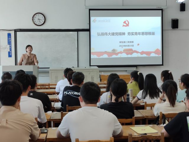学生第二党支部书记范晶晶讲授了题为“弘扬伟大建党精神,夯实青年思想根基”的专题党课。